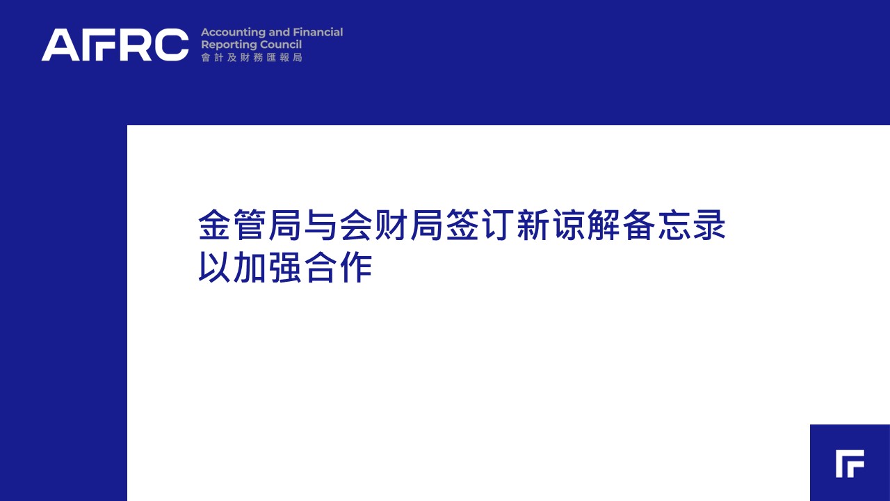 香港金融管理局(金管局)与会计及财务汇报局(会财局)于今日(8月17日)签订一份新谅解备忘录,取替双方在2007年11月19日签订的谅解备忘录。