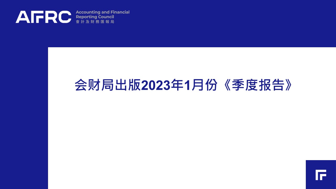 会财局发布了2023年1月份《季度报告》,让持份者了解本局最新发展和其他值得留意的监管议题。在2022-23财年第三季度,会财局推出了多项新举措提升审计质素和财务汇报质素,以有效履行我们的监管责任。