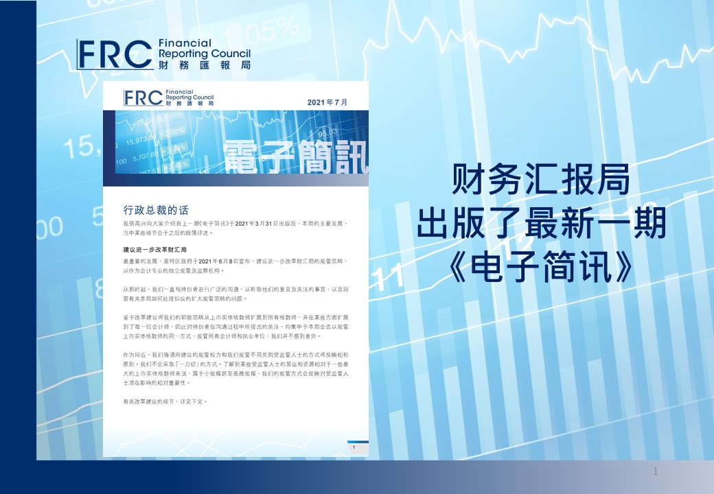 财务汇报局发布了最新一期的<<电子简讯>> (7月份),展述本局的主要发展,包括建议的进一步改革、监管合作、出版报告及第二届暑期实习生计划。请按此浏览。
