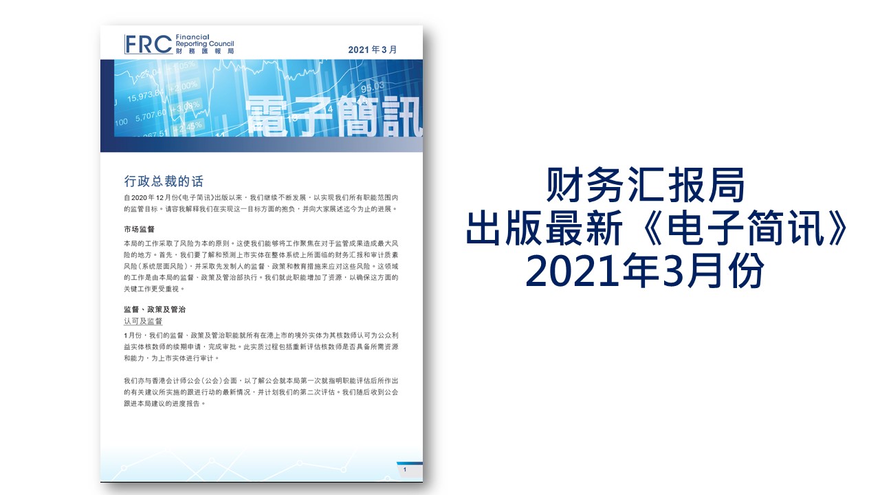 财务汇报局发布了最新一期的<<电子简讯>>,展述本局如何实现所有职能范围内的监管目标以及迄今的进展。请按此浏览。