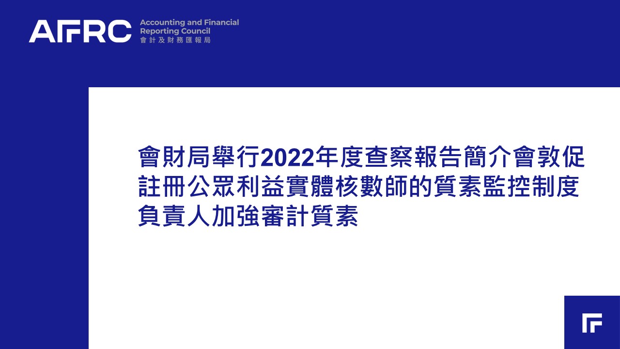 會財局舉行2022年度查察報告簡介會敦促註冊公眾利益實體核數師的質素監控制度負責人加強審計質素