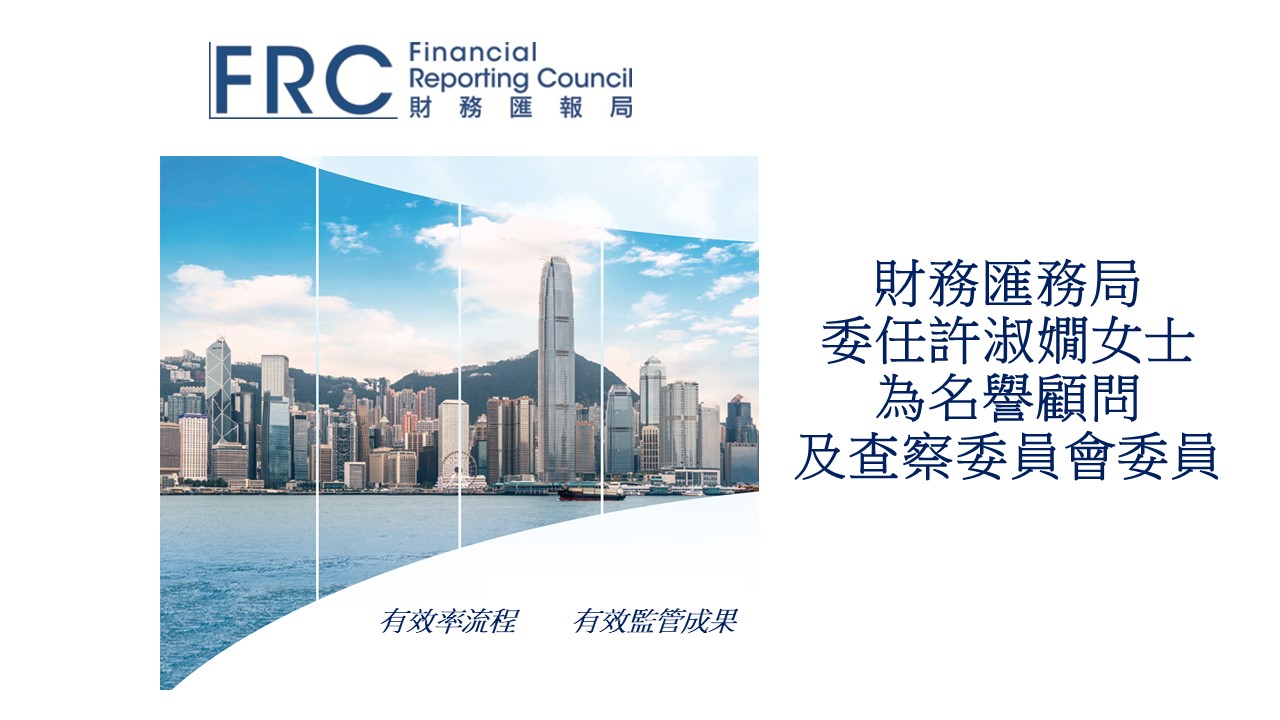 財務匯務局委任許淑嫺女士為名譽顧問及查察委員會委員