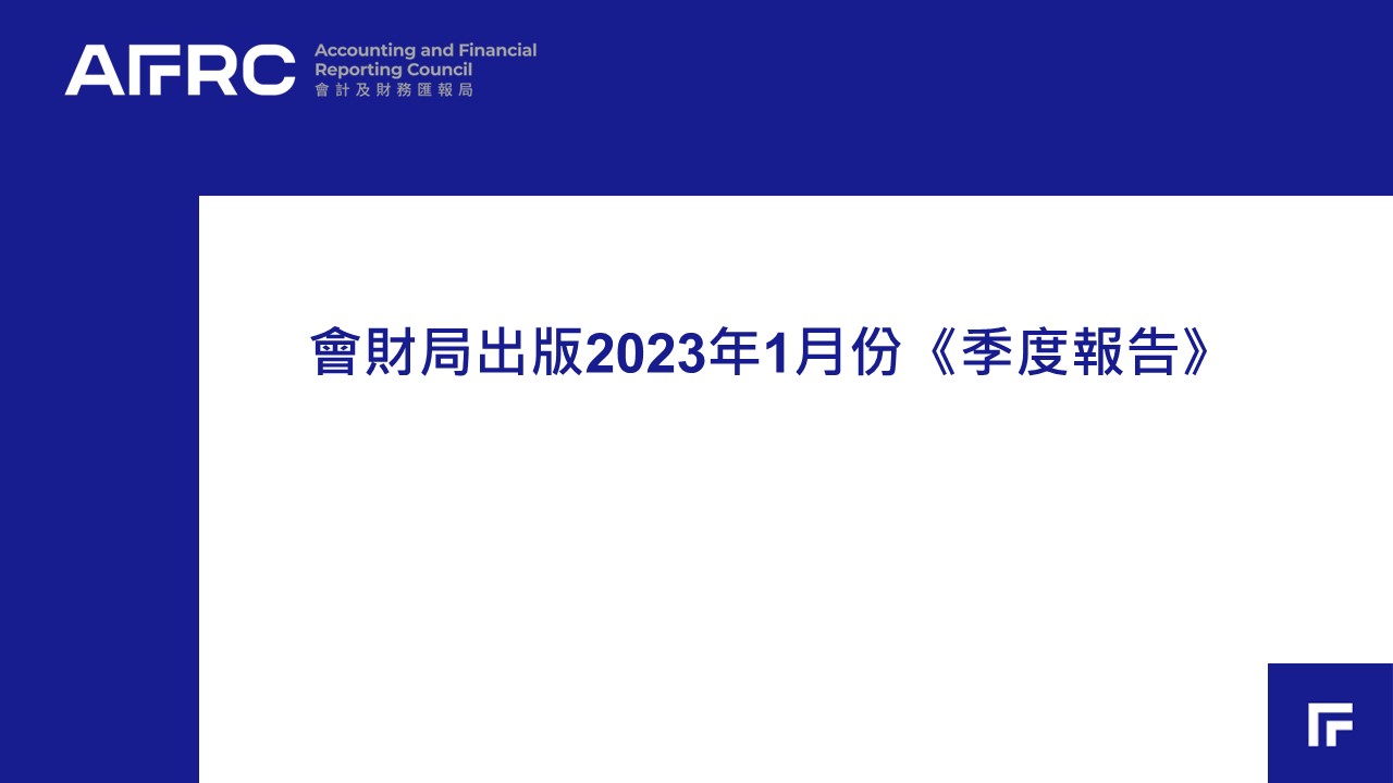 會財局發布了2023年1月份《季度報告》,讓持份者了解本局最新發展和其他值得留意的監管議題。在2022-23財年第三季度,會財局推出了多項新舉措提升審計質素和財務匯報質素,以有效履行我們的監管責任。