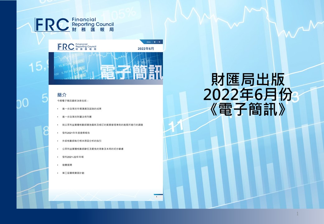 財務匯報局發布了2022年6月份《電子簡訊》 ,闡述進一步改革的市場溝通及諮詢的成果、2021-22年年報及2021年年度查察報告的發布、公眾利益實體核數師辭任及罷免的現象及本局的初步顧慮,以及徵費展開等議題。