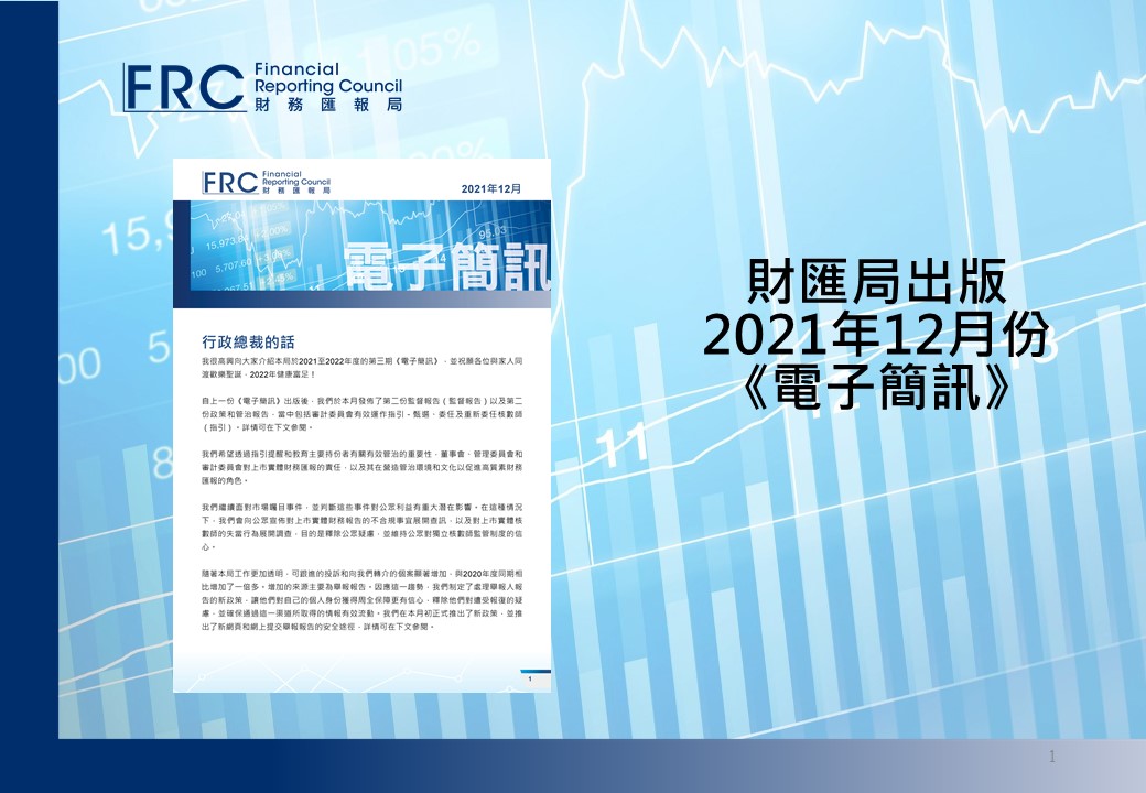 財務匯報局發布了最新一期的《電子簡訊》 (12月份),闡述本局規管改革的進展、本局的新舉報政策,以及剛出版的審計委員會有效運作指引及本局對香港會計師公會執行指明職能的評估報告。
