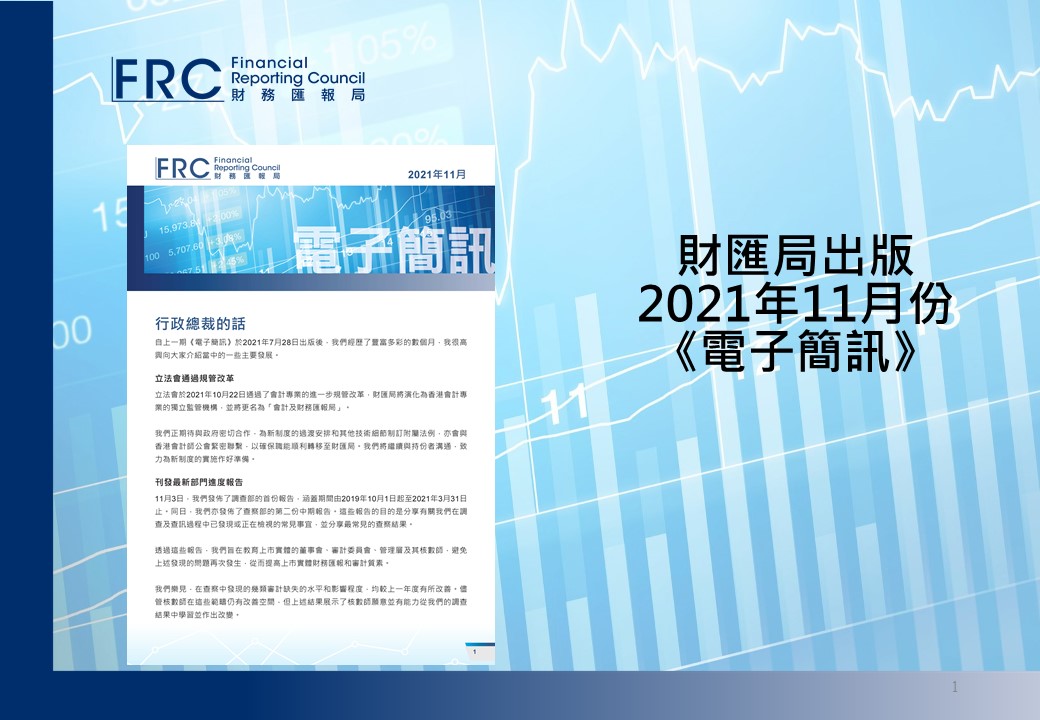 財務匯報局發布了最新一期的《電子簡訊》​ (11月份),內容豐富,闡述本局的主要發展,包括規管改革的進展、本局的新舉報政策,以及剛出版的年度調查報告及中期查察報告。